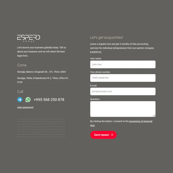 Я бы хотел поделиться своим впечатлением о регистрации ИП в Тбилиси с помощью компании Espero.